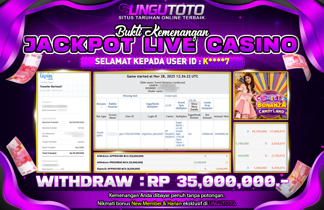 UNGUTOTO JACKPOT SWEET BONANZA CANDYLAND Rp.35.000.000 LUNAS