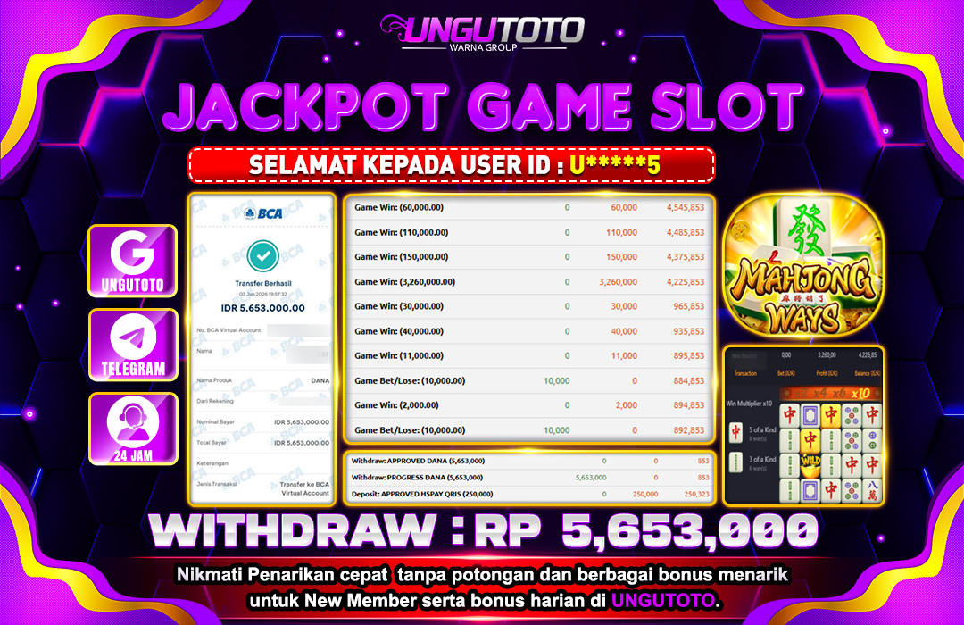 UNGUTOTO JACKPOT MAHJONG WAYS Rp.5.653.000 LUNAS