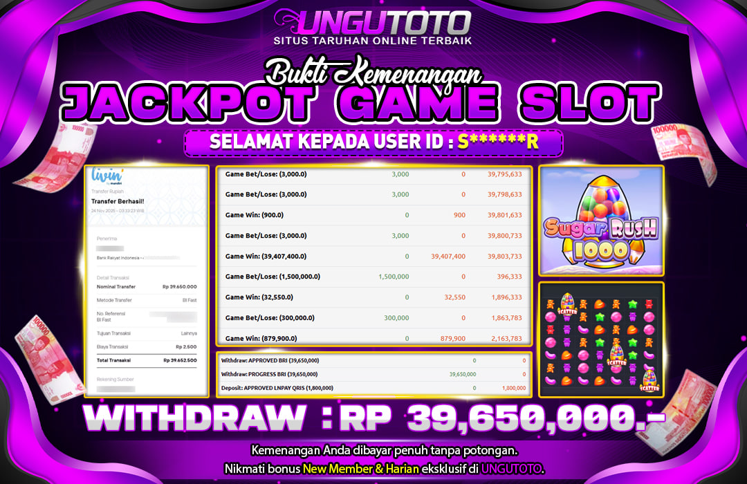 UNGUTOTO JACKPOT SUGAR RUSH 1000 Rp.39.650.000 LUNAS