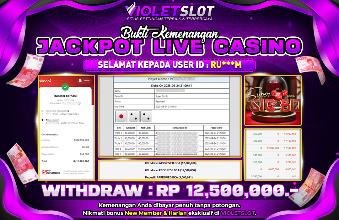 UNGUTOTO JACKPOT LIVE CASINO SICBO Rp.12.500.000 LUNAS