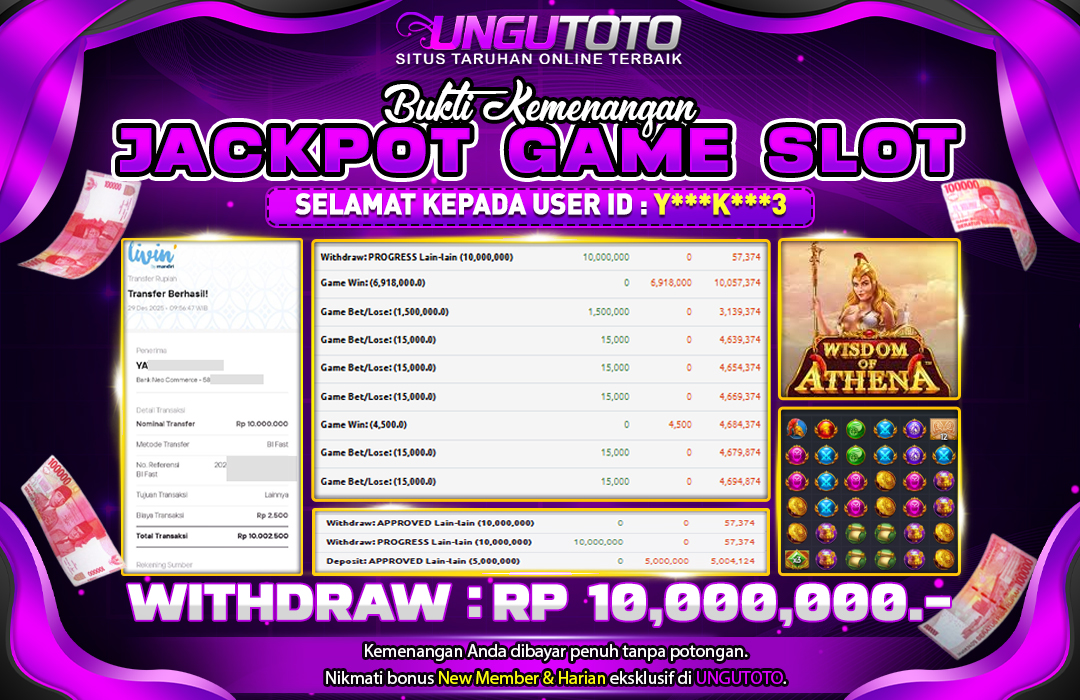UNGUTOTO JACKPOT WISDOM OF ATHENA Rp.10.000.000 LUNAS