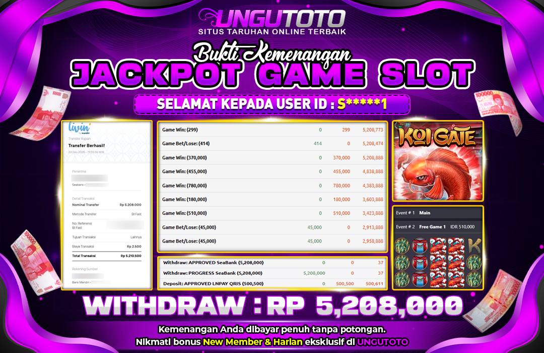 UNGUTOTO JACKPOT KOI GATE Rp.5.208.000 LUNAS