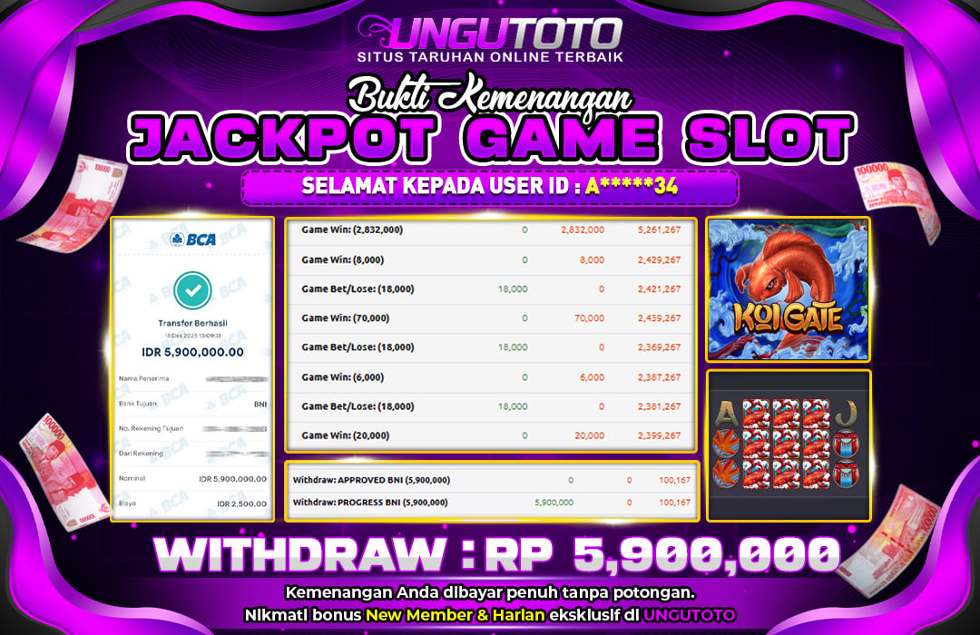 UNGUTOTO JACKPOT KOI GATE Rp.5.900.000 LUNAS