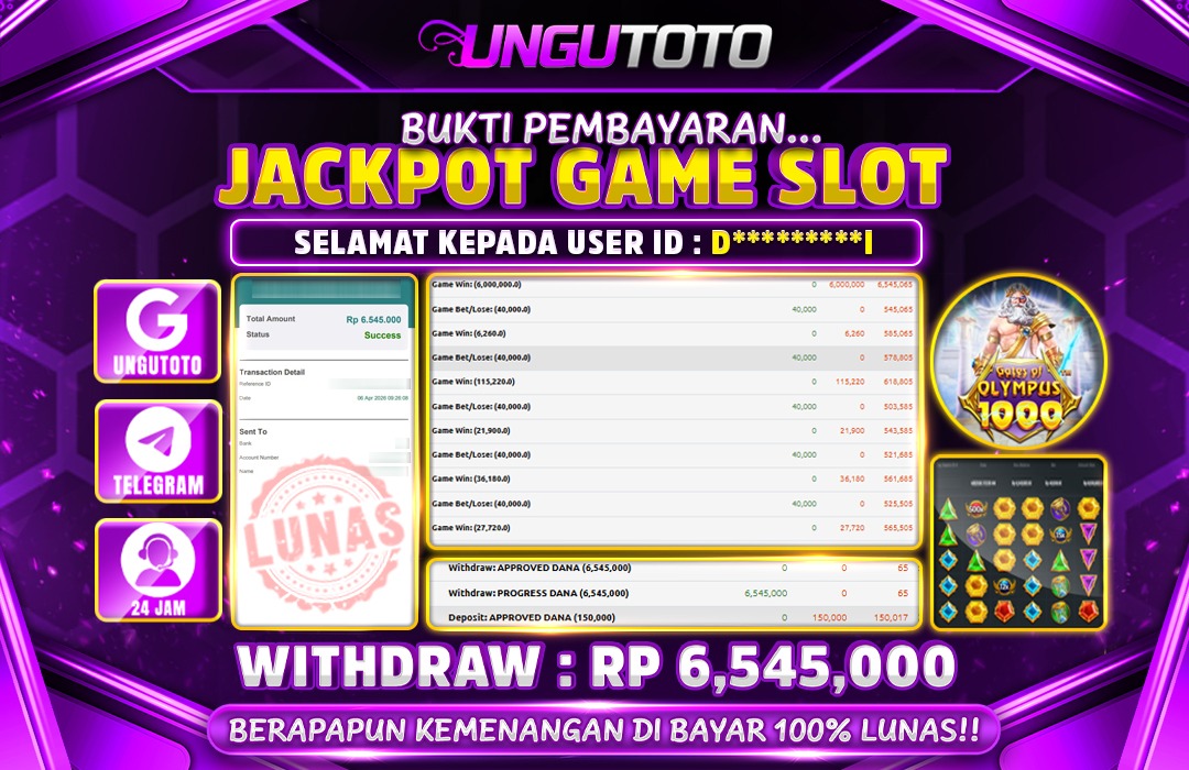 UNGUTOTO JACKPOT GATES OF OLYMPUS 1000 Rp.6.545.000 LUNAS