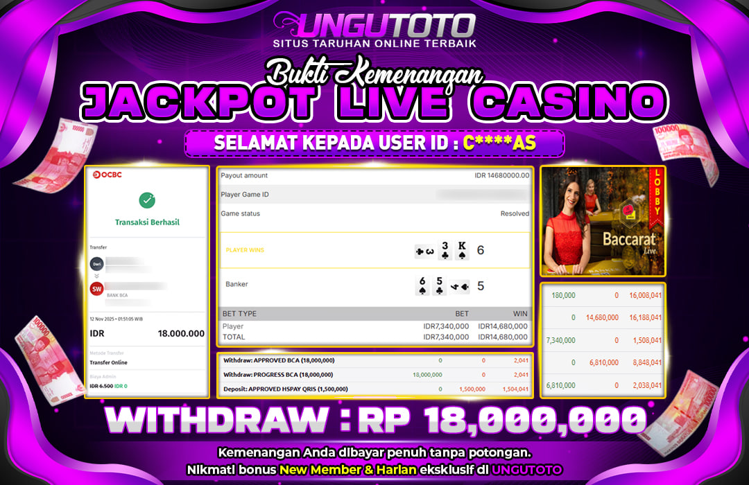 UNGUTOTO JACKPOT BACCARAT Rp.18.000.000 LUNAS