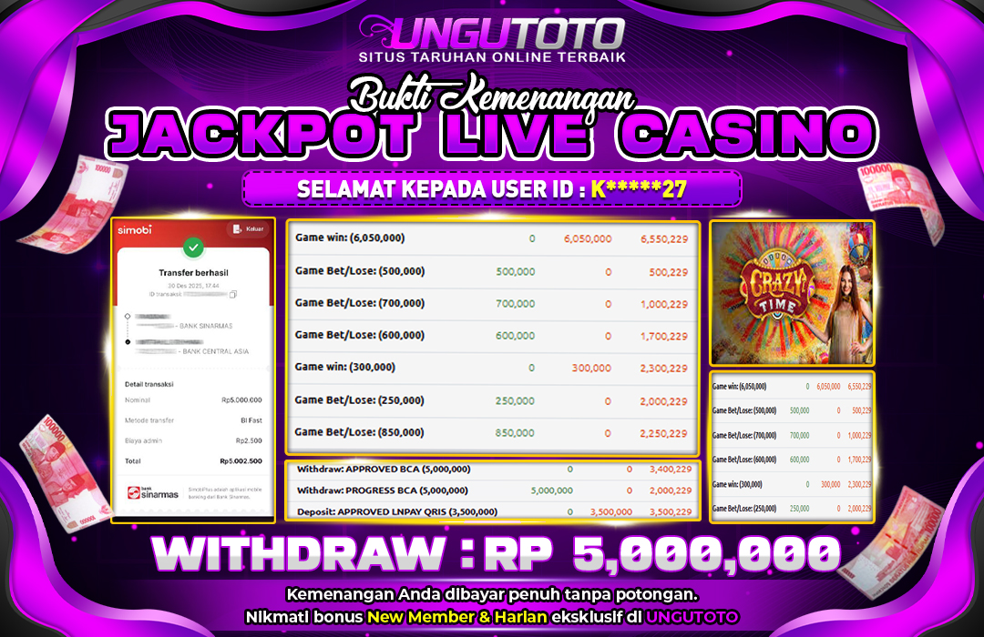 UNGUTOTO JACKPOT LIVE CASINO EVOLUTION CRAZY TIME Rp.5.000.000 LUNAS