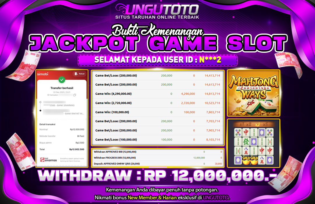 UNGUTOTO JACKPOT MAHJONG WAYS Rp.12.000.000 LUNAS