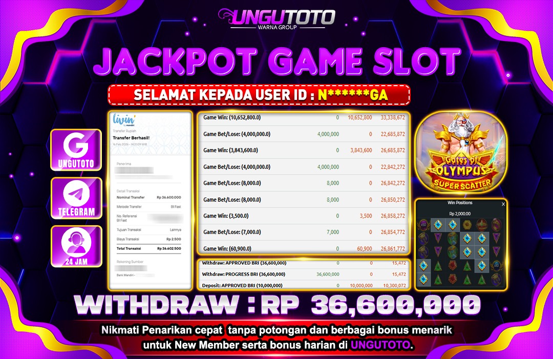 UNGUTOTO JACKPOT GATES OF OLYMPUS SUPER SCATTER Rp.36.000.000 LUNAS