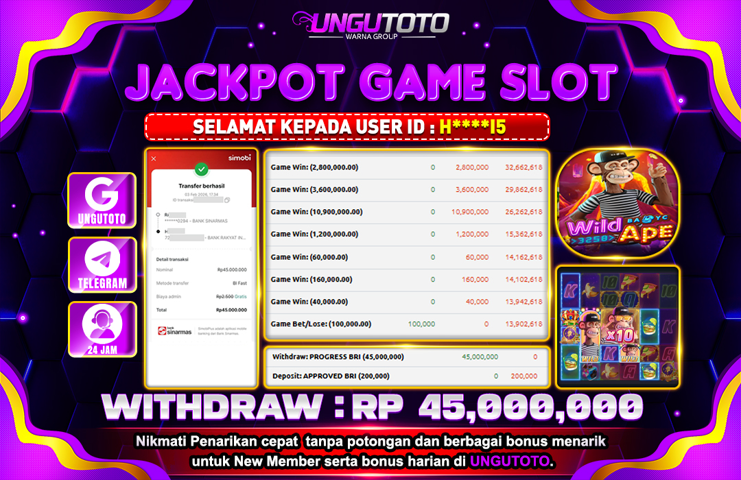 UNGUTOTO JACKPOT WILD APE #3258 Rp.45.000.000 LUNAS