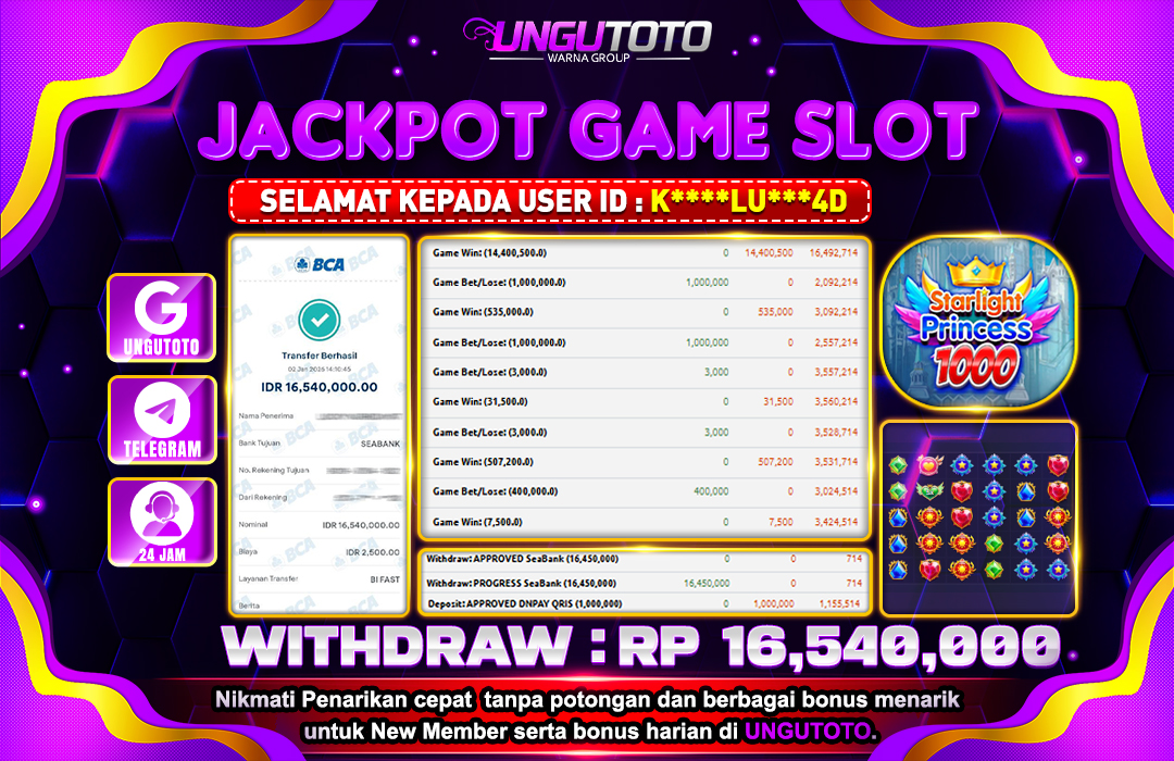 UNGUTOTO JACKPOT SLOT PRAGMATIC STARLIGHT PRINCESS 1000 Rp.16.540.000 LUNAS