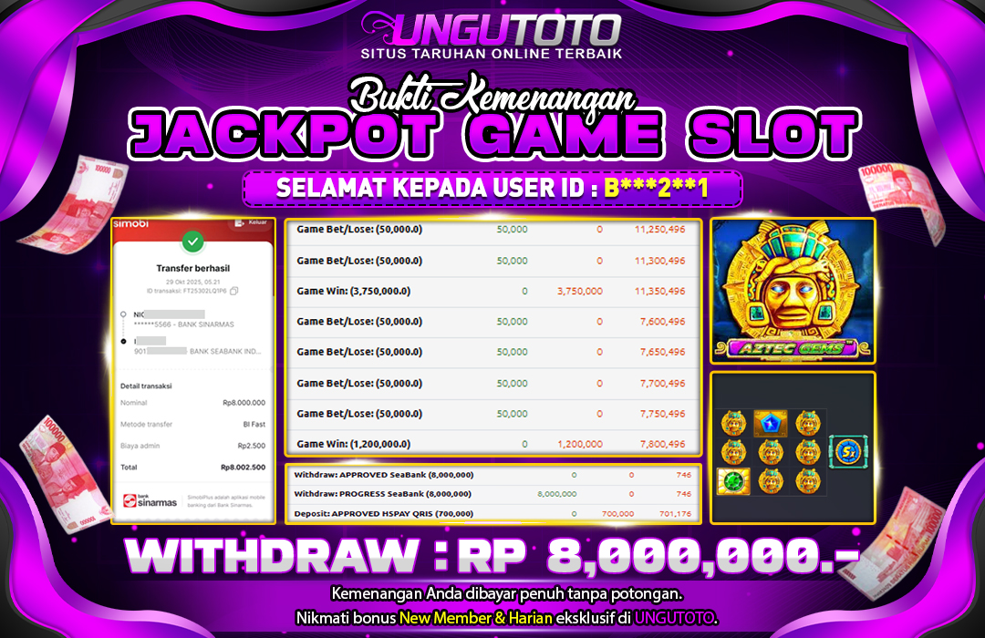 UNGUTOTO JACKPOT GAME SLOT AZTEC Rp.8.000.000 LUNAS