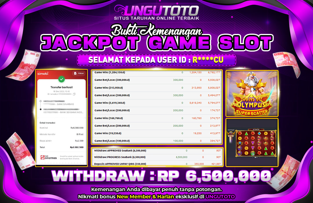 UNGUTOTO JACKPOT GATES OF OLYMPUS SUPER SCATTER Rp.6.500.000 LUNAS