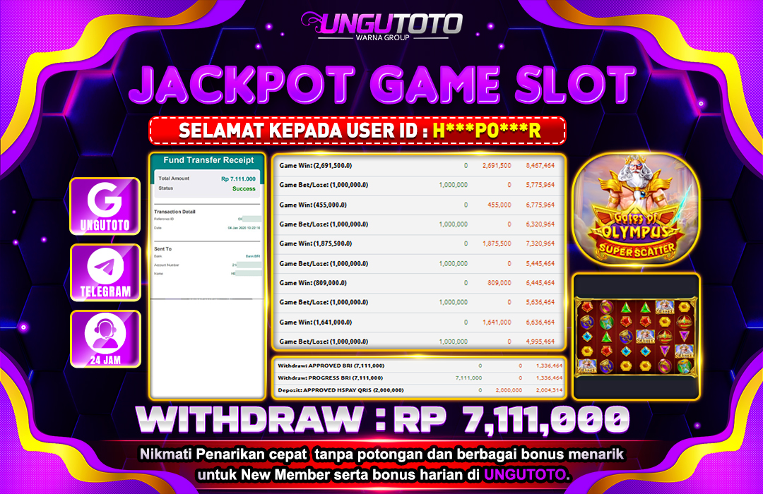 UNGUTOTO JACKPOT SLOT PRAGMATIC GATES OF OLYMPUS SUPER SCATER Rp.7.111.000 LUNAS