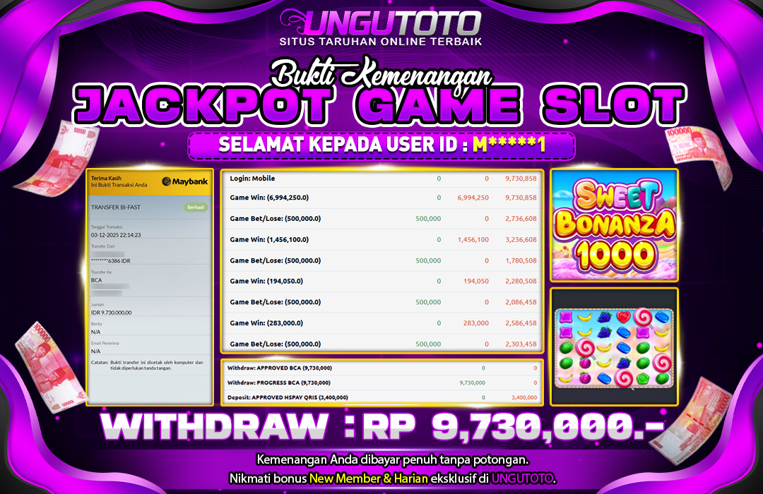 UNGUTOTO JACKPOT SWEET BONANZA 1000 Rp.9.730.000 LUNAS