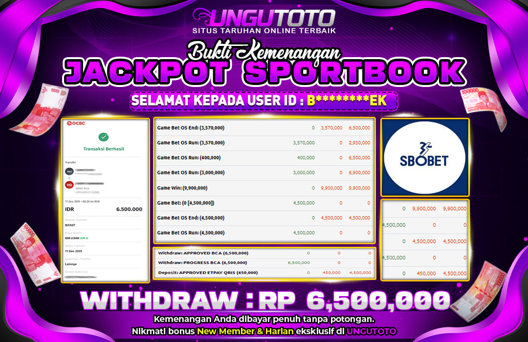 UNGUTOTO JACKPOT SBOBET Rp.6.500.000 LUNAS