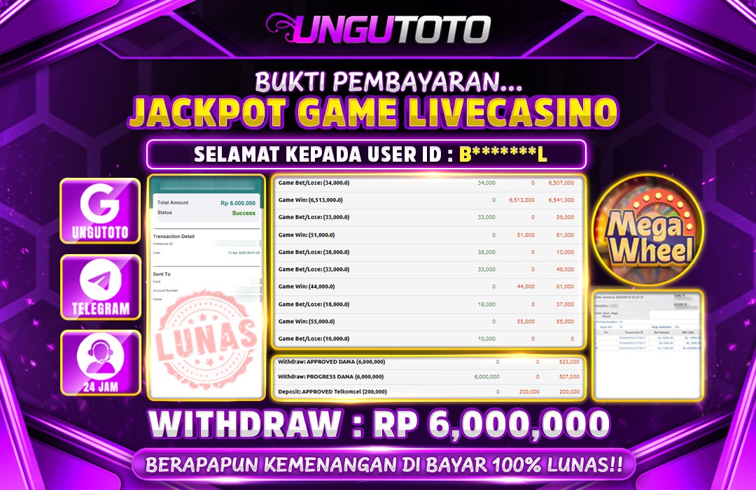 UNGUTOTO JACKPOT LIVE CASINO MEGA WHEEL Rp.6.000.000 LUNAS