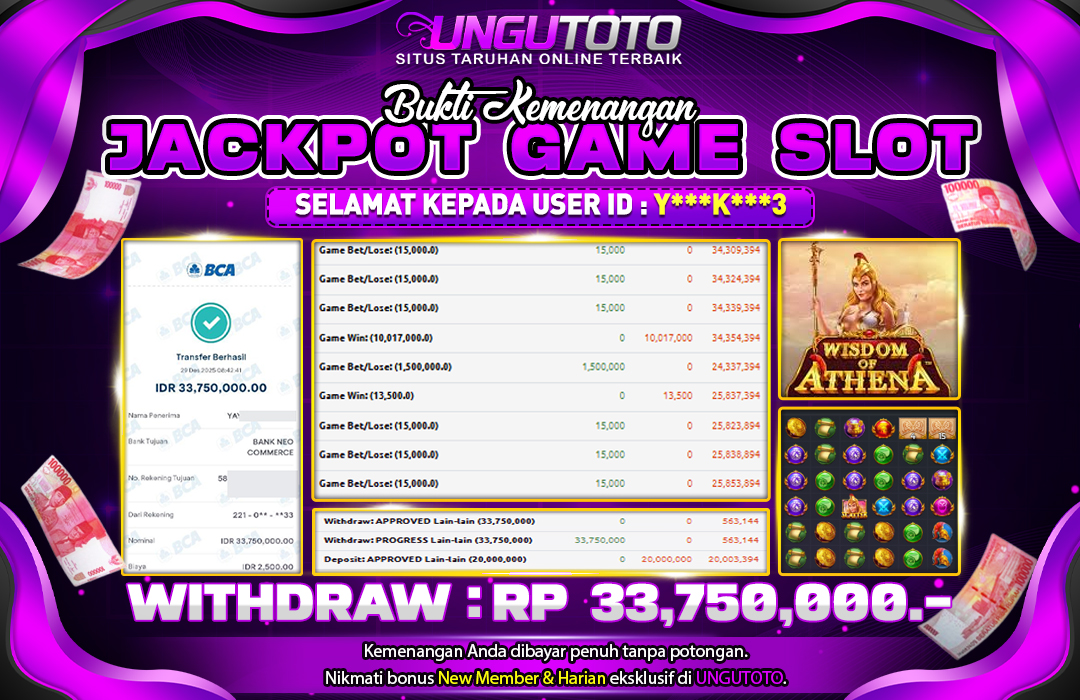 Selamat Kepada Member UNGUTOTO Y*******3 Telah Jackpot Di WISDOM OF ATHENA