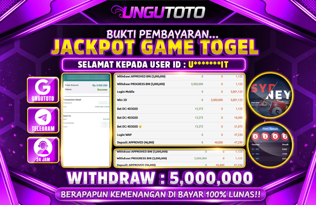 UNGUTOTO JACKPOT TOGEL SYDNEY LOTTO Rp.5.000.000 LUNAS