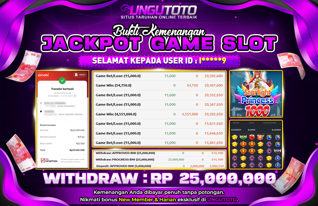 UNGUTOTO JACKPOT STARLIGHT PRINCES 1000 Rp.25.000.000 LUNAS