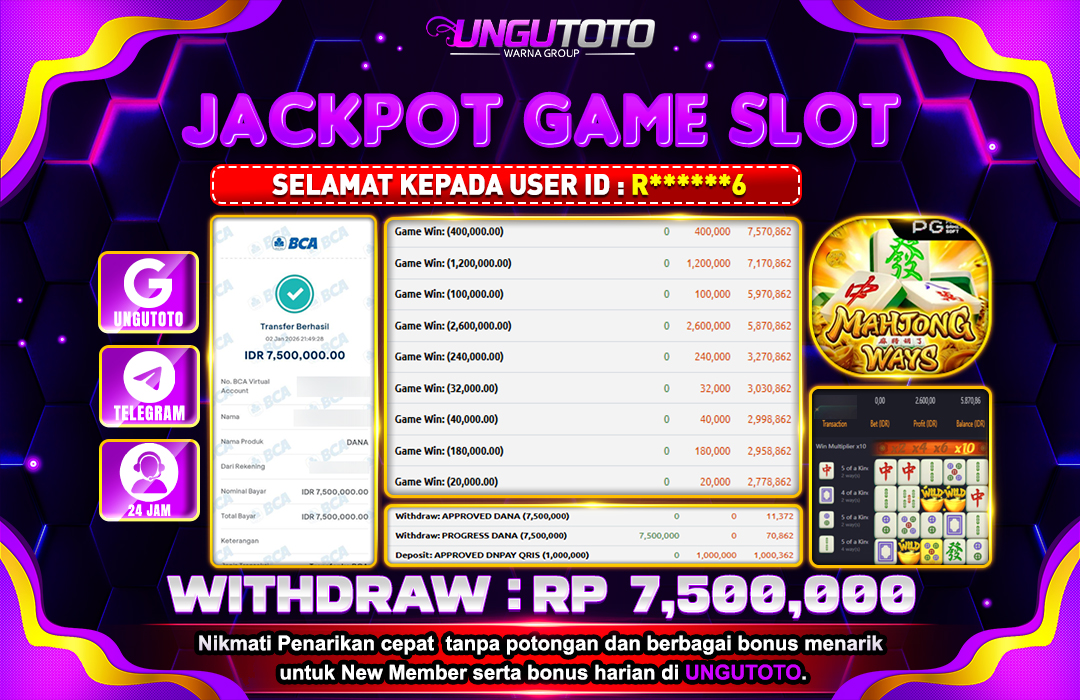 UNGUTOTO JACKPOT MAHJONG WAYS Rp.7.500.000 LUNAS