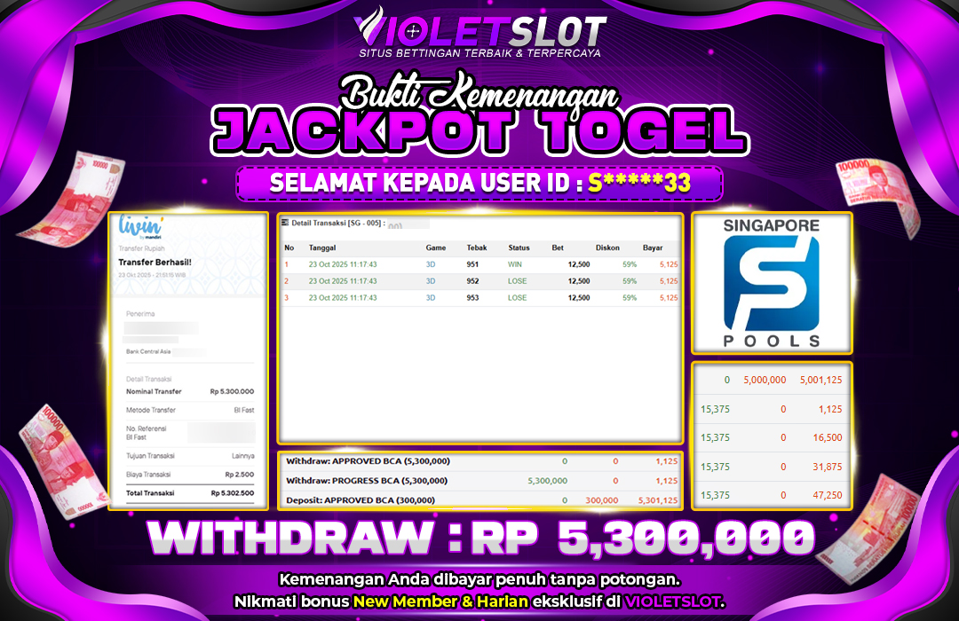 UNGUTOTO JACKPOT TOGEL - SINGAPORE POOLS Rp.5.300.000 LUNAS