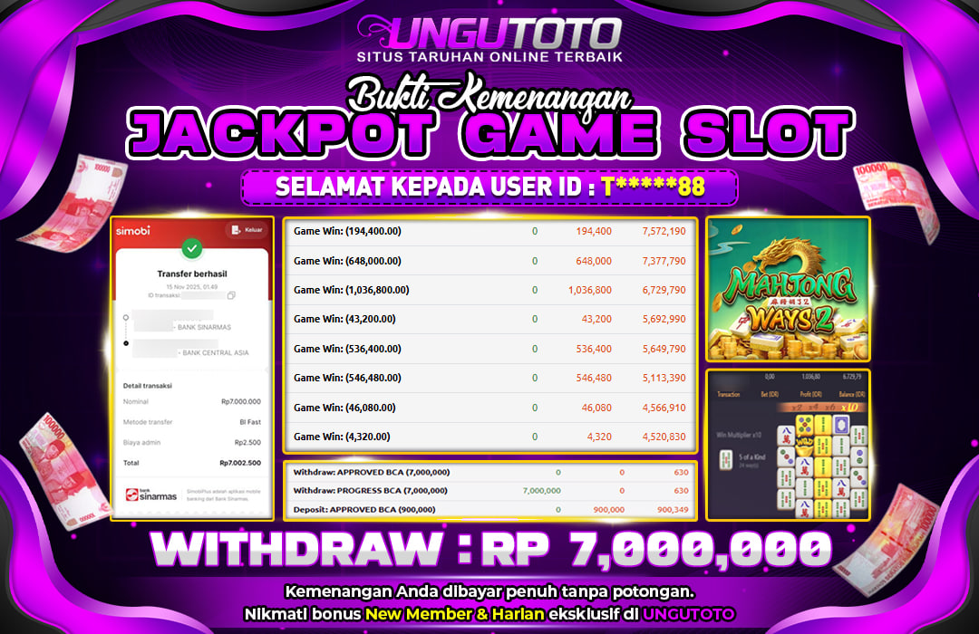 UNGUTOTO JACKPOT MAHJONG WAYS2 Rp.7.000.000 LUNAS