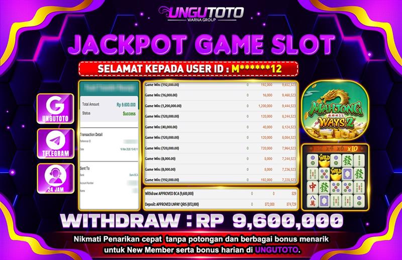 Selamat Kepada Member UNGUTOTO M******SS Telah Jackpot Di MAHJONG WAYS 2