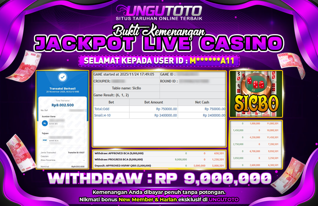 UNGUTOTO JACKPOT SICBO Rp.9.000.000 LUNAS