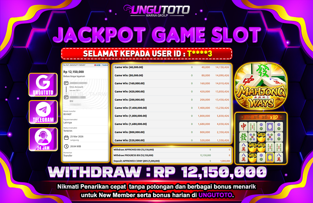 Selamat Kepada Member UNGUTOTO D******A Telah Jackpot Di MAHJONG WAYS