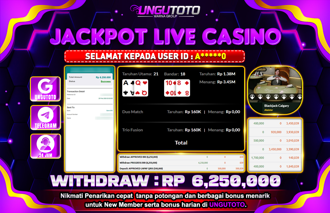 Selamat Kepada Member UNGUTOTO S*********D Telah Jackpot Di BLACKJACK CALGARY