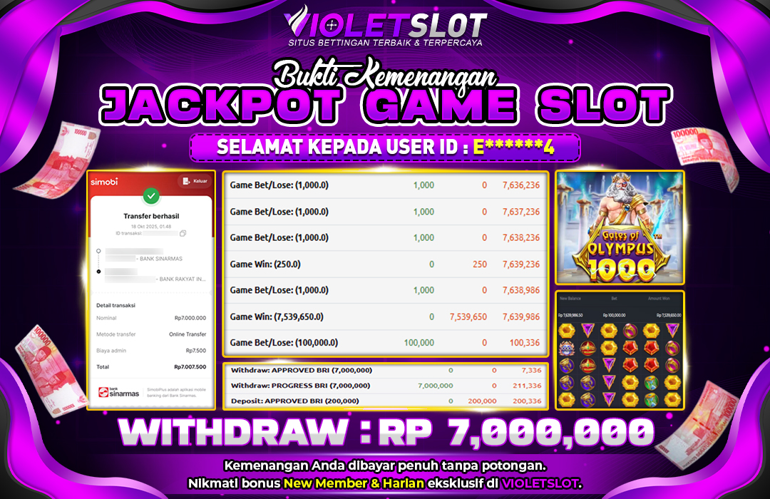 UNGUTOTO JACKPOT PRAGMATIC PLAY - GATES OF OLYMPUS 1000 Rp.7.000.000 LUNAS