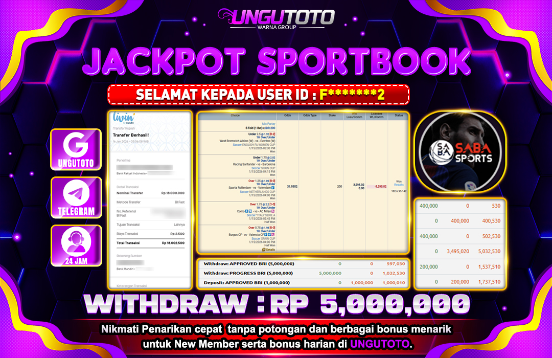 UNGUTOTO JACKPOT SABA SPORT Rp.5.000.000 LUNAS