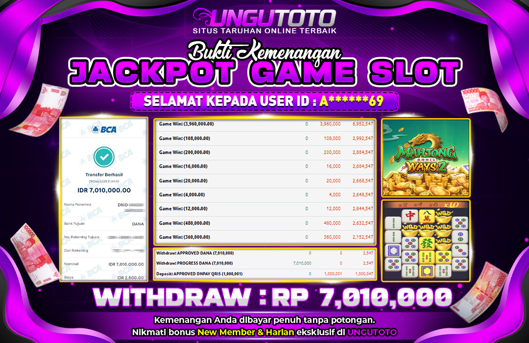 UNGUTOTO JACKPOT MAHJONG WAYS 2 Rp.7.010.000 LUNAS