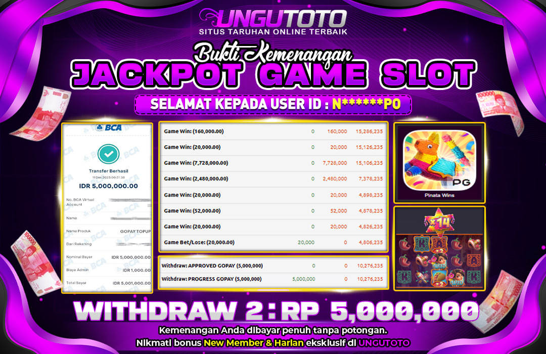 UNGUTOTO JACKPOT PINATA WINS Rp.5.000.000 LUNAS