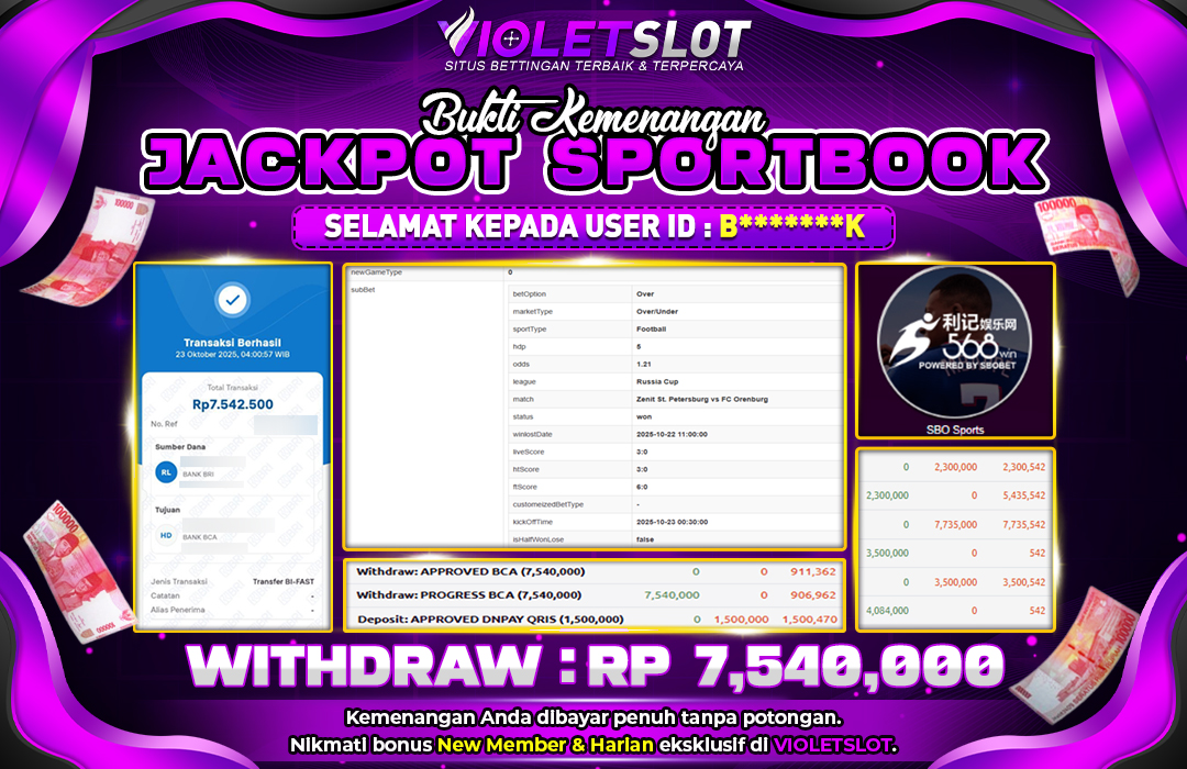 Selamat Kepada Member UNGUTOTO B*******K Telah Jackpot Di SBO SPORT