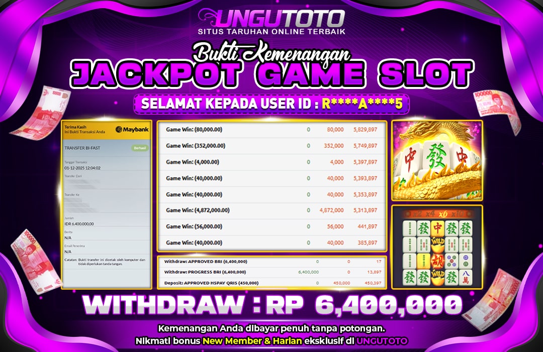 Selamat Kepada Member UNGUTOTO R*********5 Telah Jackpot Di MAHJONG WAYS