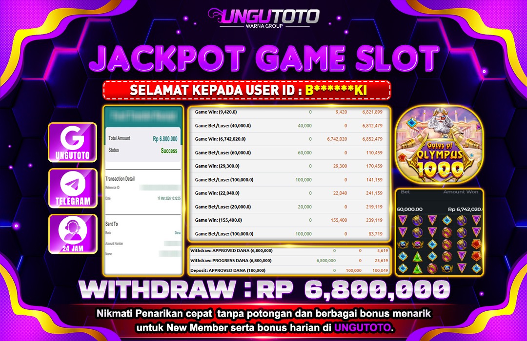 UNGUTOTO JACKPOT GATES OF OLYMPUS 1000 Rp.6.800.000 LUNAS