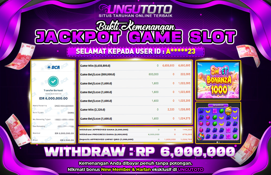 UNGUTOTO JACKPOT SWEET BONANZA 1000 Rp.6.000.000 LUNAS