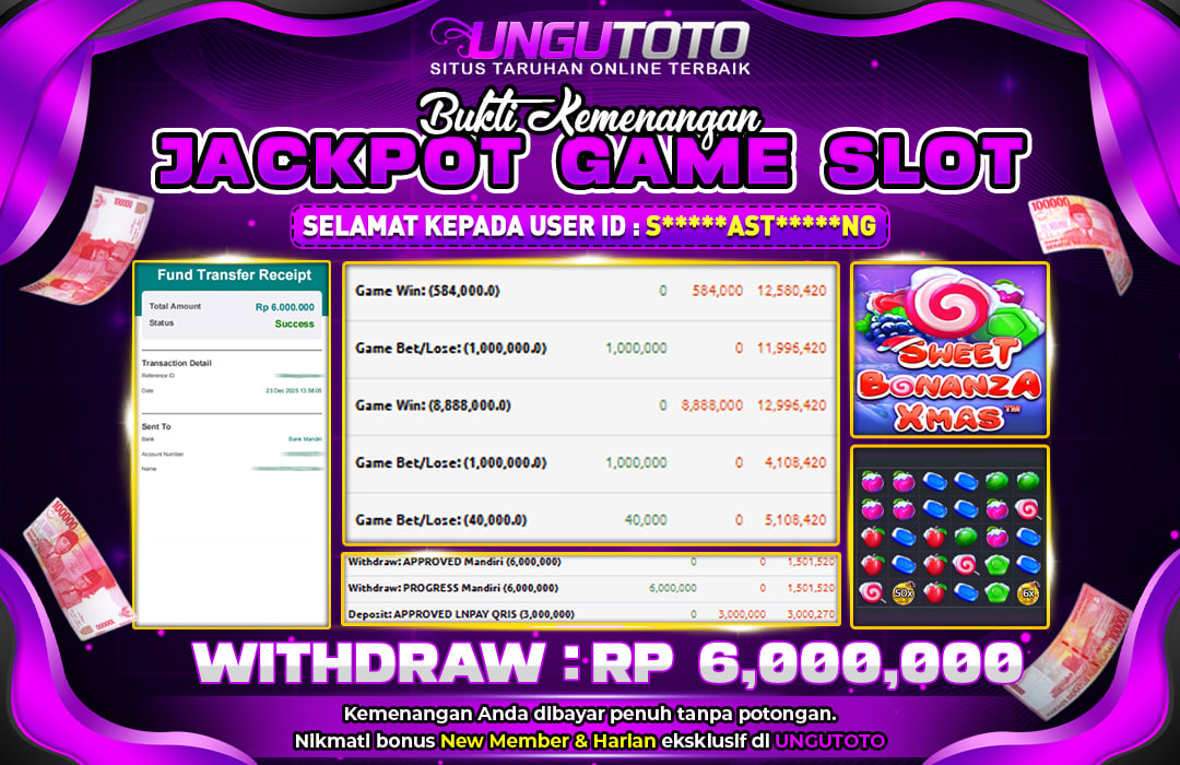 UNGUTOTO JACKPOT SWEET BONANZA XMAS Rp.6.000.000 LUNAS
