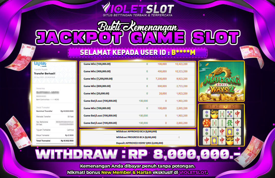 🎉 Selamat untuk USER ID: B⭑⭑⭑0M yang sukses membawa pulang Rp.Rp.7.500.000 dari permainan MAHJONG WAYS! 💸