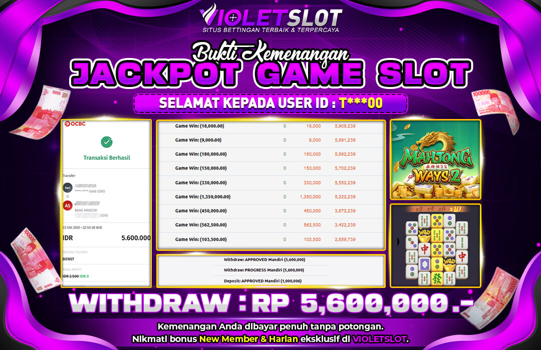 Selamat Kepada Member UNGUTOTO T******8 Telah Jackpot Di MAHJONG WAYS