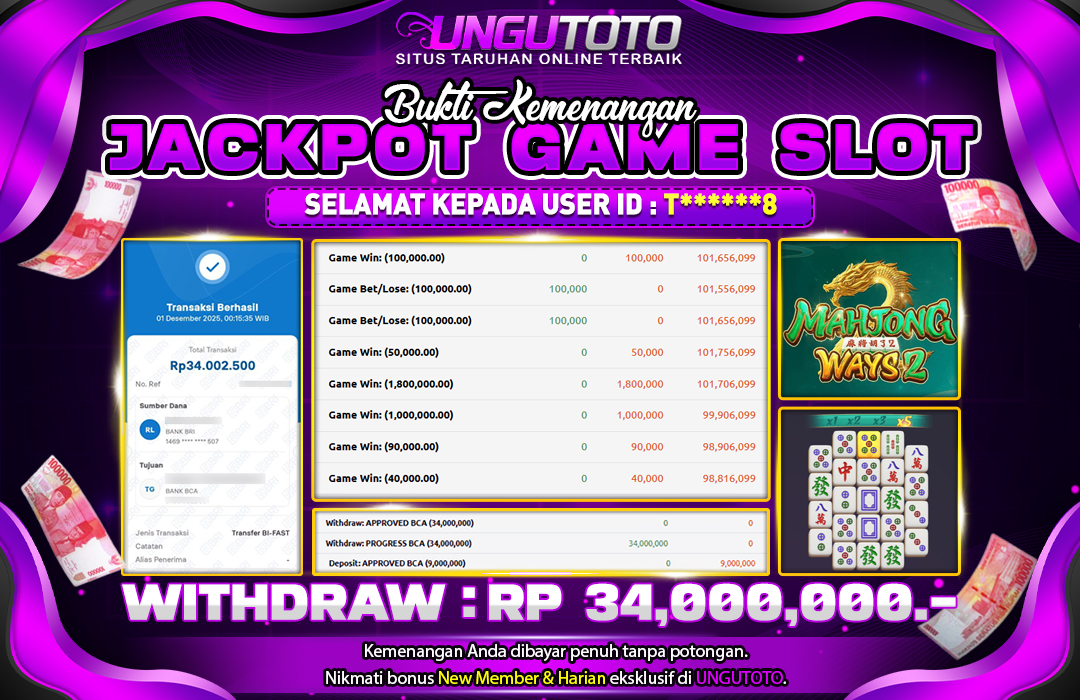 UNGUTOTO JACKPOT MAHJONG WAYS Rp.34.000.000 LUNAS