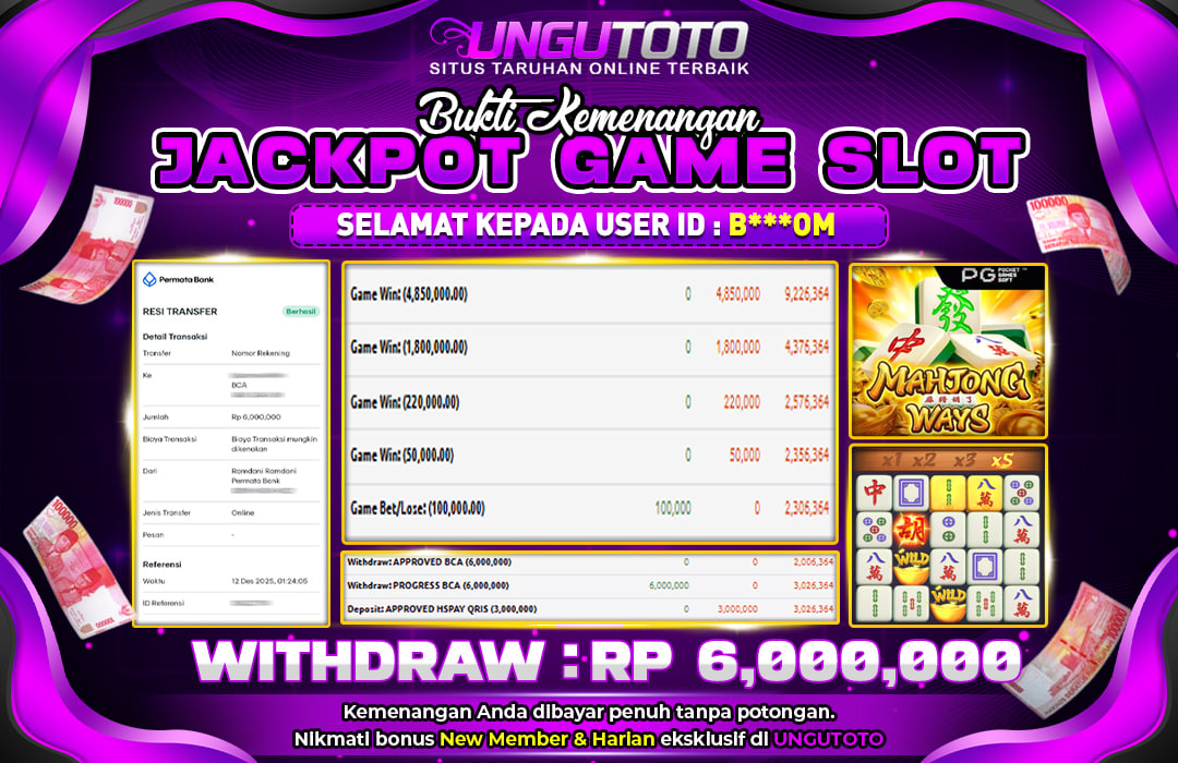 UNGUTOTO JACKPOT MAHJONG WAYS Rp.6.000.000 LUNAS