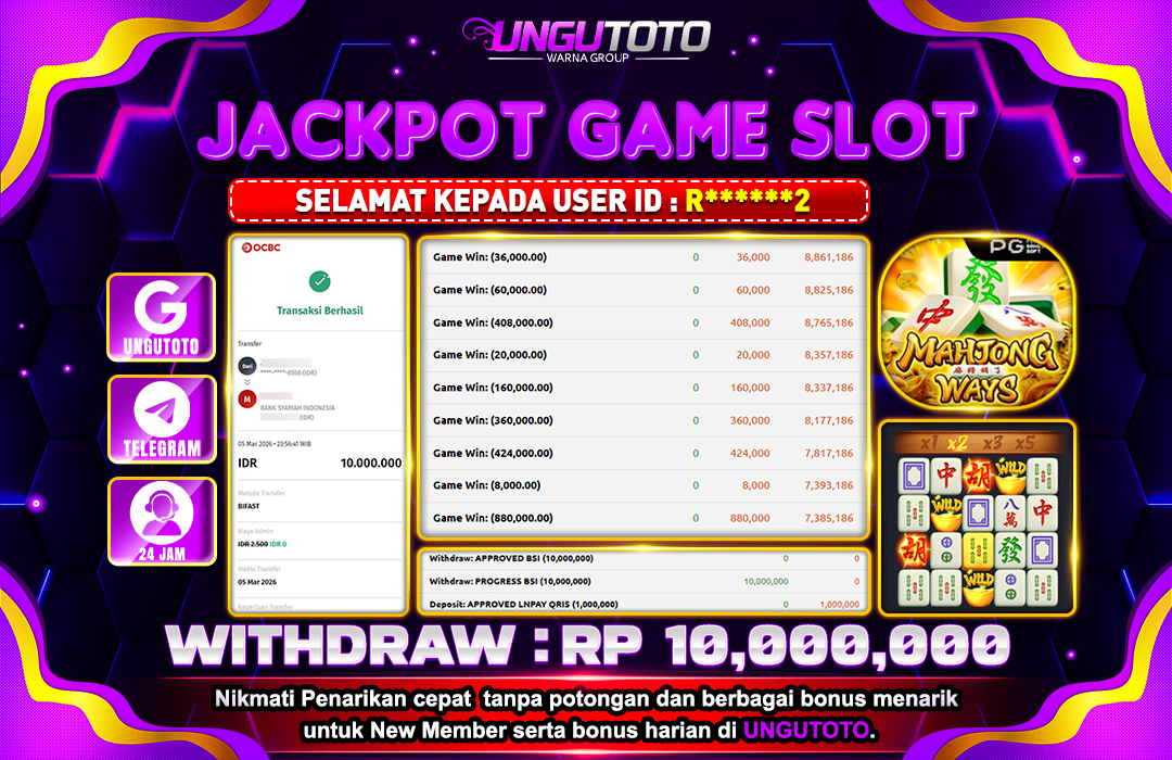 Selamat Kepada Member UNGUTOTO R****2 Telah Jackpot Di MAHJONG WAYS