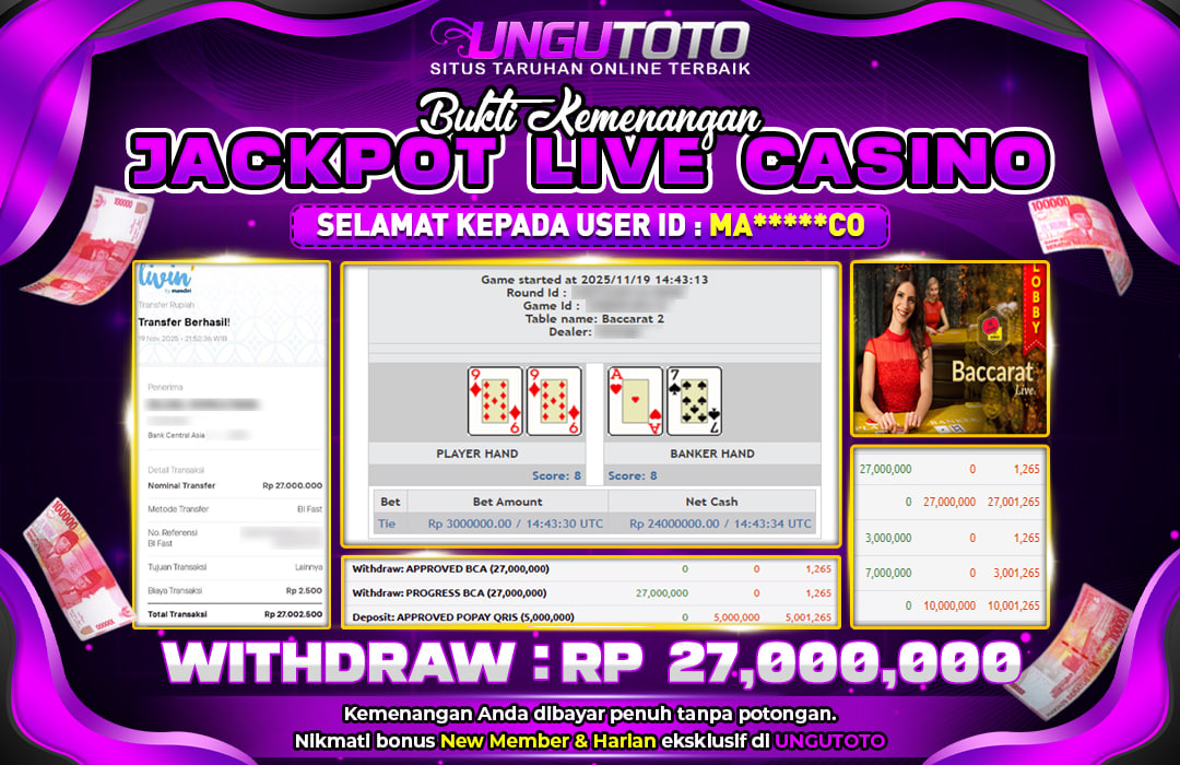 UNGUTOTO JACKPOT BACCARAT Rp.27.000.000 LUNAS