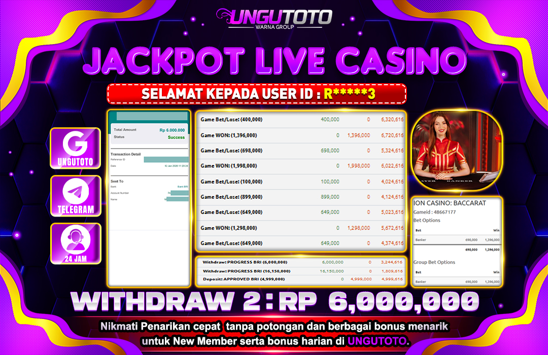 UNGUTOTO JACKPOT LIVE CASINO ION BACARAT Rp.6.000.000 LUNAS