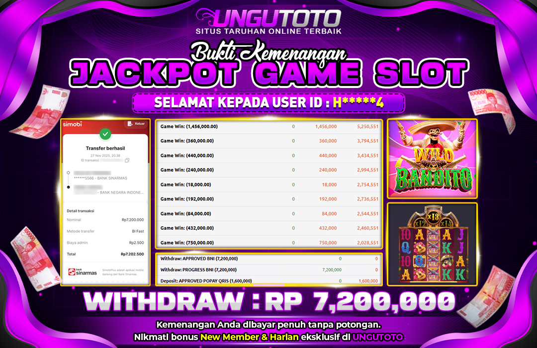 UNGUTOTO JACKPOT WILD BANDITO Rp.7.200.000 LUNAS