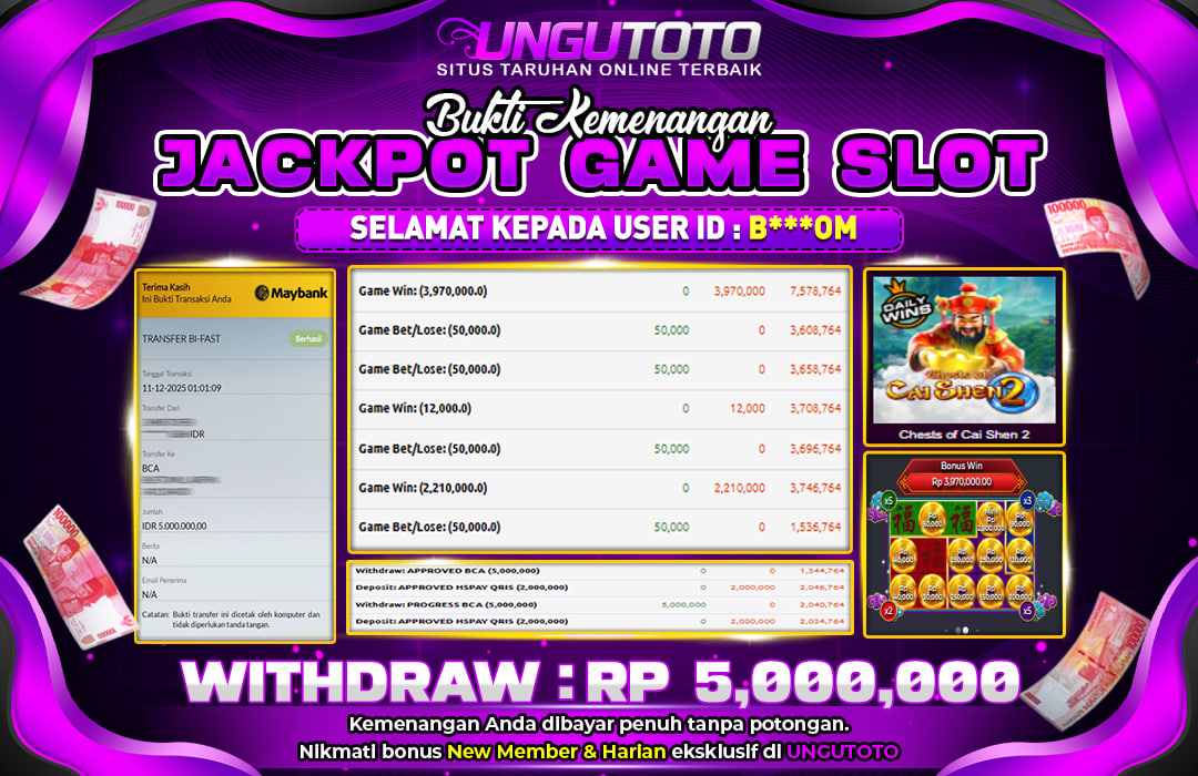 Sudah banyak yang buktiin sendiri—UNGUTOTO konsisten bayar semua kemenangan member, berapapun nominalnya. Transparan, aman, dan dijamin tuntas. 💯🔒