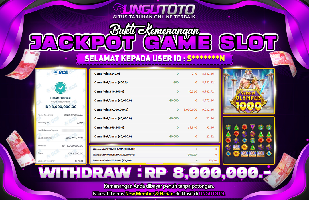 UNGUTOTO JACKPOT GATES OF OLYMPUS 1000 Rp.8.000.000 LUNAS