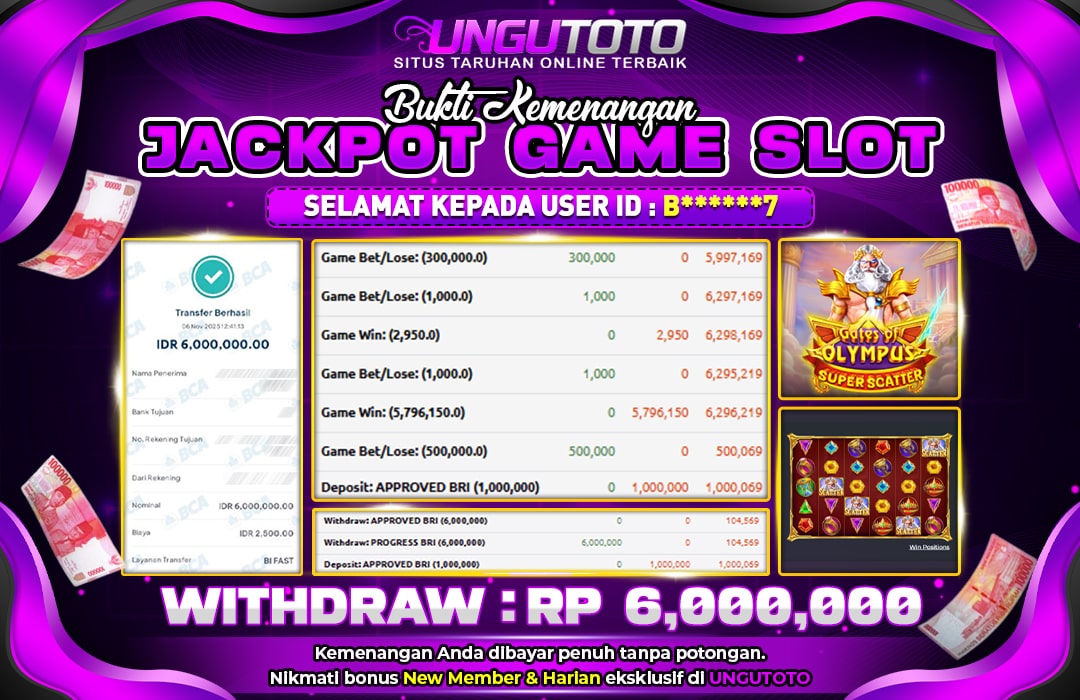UNGUTOTO JACKPOT Gates of Olympus Super Scatter Rp.6.000.000 LUNAS